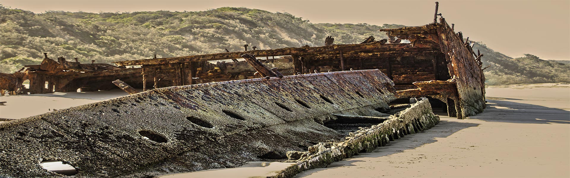 Die S.S. Maheno, ursprünglich als Luxusliner zwischen Australien und Neuseeland unterwegs, lief 1935 vor Fraser Island auf Grund.