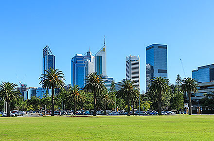 Die grüne Lunge von Perth bietet schöne Aussichten auf die Skyline ...