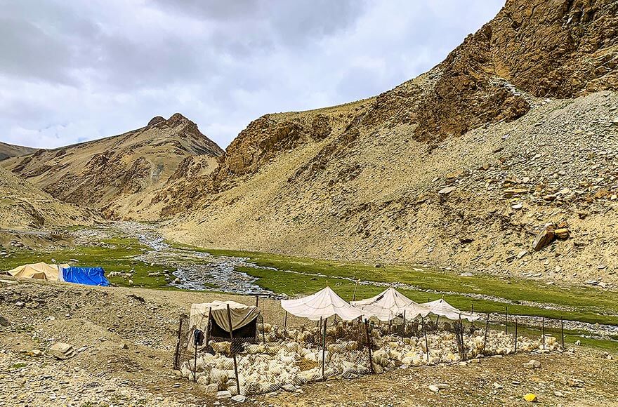 wertvolle Paschminawolle. Die Menschen leben autark. In den Sommermonaten ziehen die Nomaden