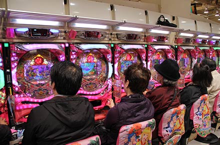 In der Näher vom U-Bahnhof befindet sich eine Pachinko-Spielhalle.