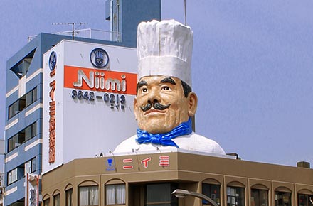 Damit auch alle comicverrückten Japaner erkennen, wo die Straße beginnt, steht eine riesige Büste von