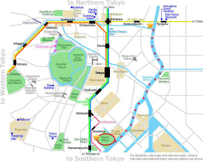Die Fahrt mit der Sumida River Line dauert etwa 35 min. und kostet 740 ¥.