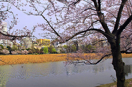 Der riesige Shinobazu Pond ist in der Mitte durch eine Kirschbaum gesäumte Allee in zwei Teile getrennt.