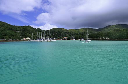 Hier am "Jetty" in Baie Sainte Anne starten die Katamarane Richtung Mahé und LaDigue.
