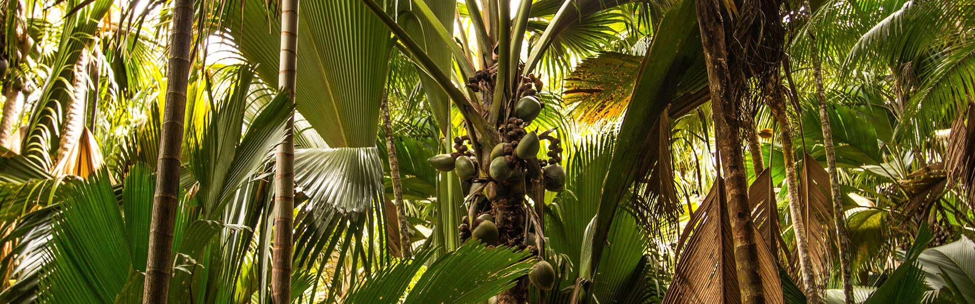 Hier ist die endemische Seychellenpalme zu Hause mit der wohl berühmtesten Frucht, der