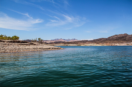 Wir fahren bis zur durch die Natur geformten Enge, wo das Boulder Basin das Virgin Basin trifft.