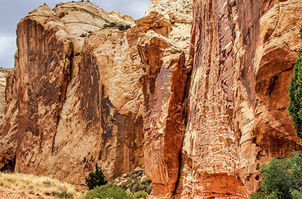 Am fast tiefsten Punkt erreichen wir den südlichen Eingang des Capitol Reef NP: