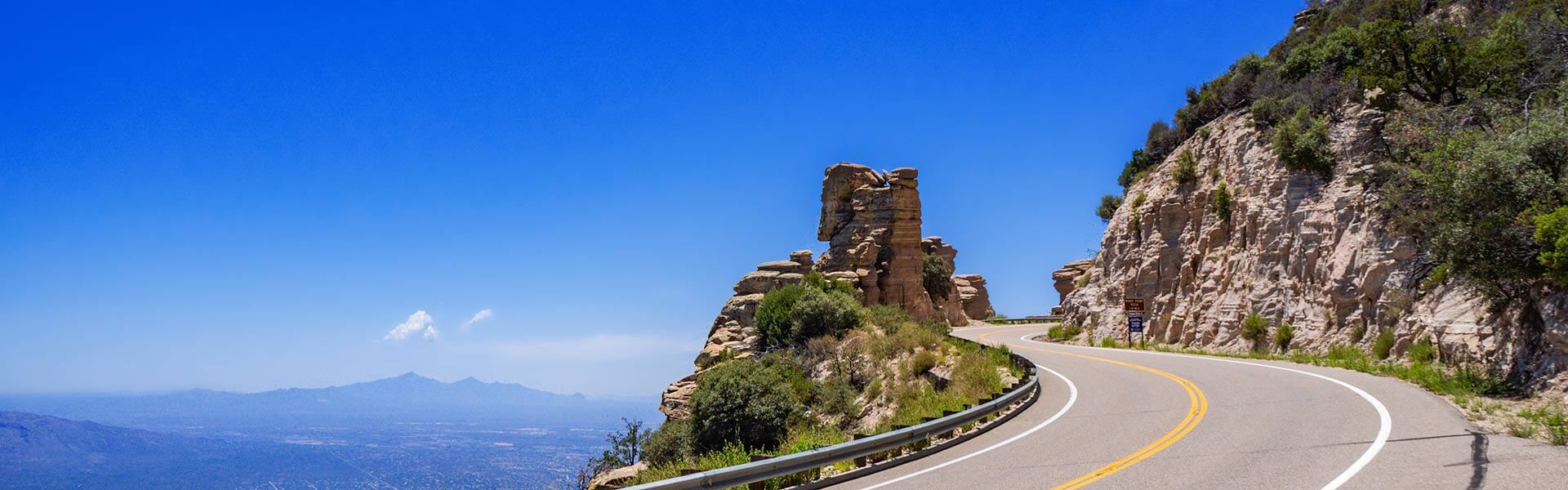 Die Straße windet sich mal serpentinenhaft - mal gerade durch die Sky Island Mountains.