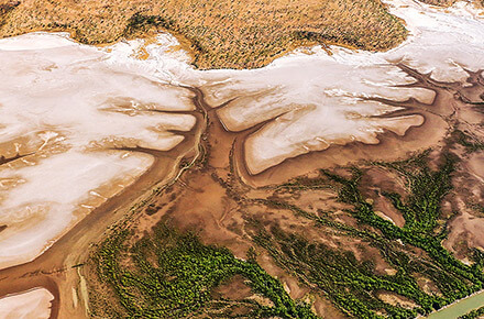 Bevor es nach Kununurra geht, fliegen wir über die Salzpfannen, die