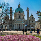 Der Vorplatz, der Karlsplatz nebst Garten ist wunderschön anzusehen.